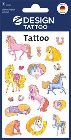 Matrica, tetoválás, 1 ív, 76x120 mm, AVERY ZWECKFORM, "Z-Design No.56681", csillámos lovak