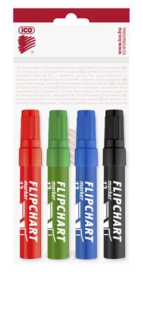 Flipchart marker készlet, 1-4 mm, vágott, ICO "Artip 12", 4 különböző szín